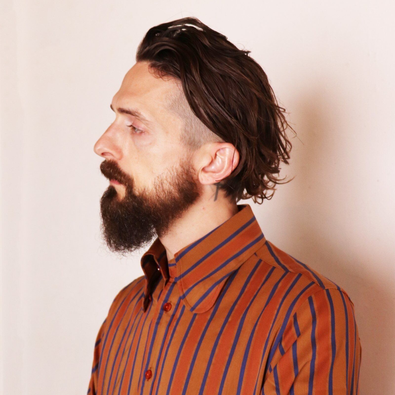 【Stripe Beagle Collar Shirts - Camel×Orange】