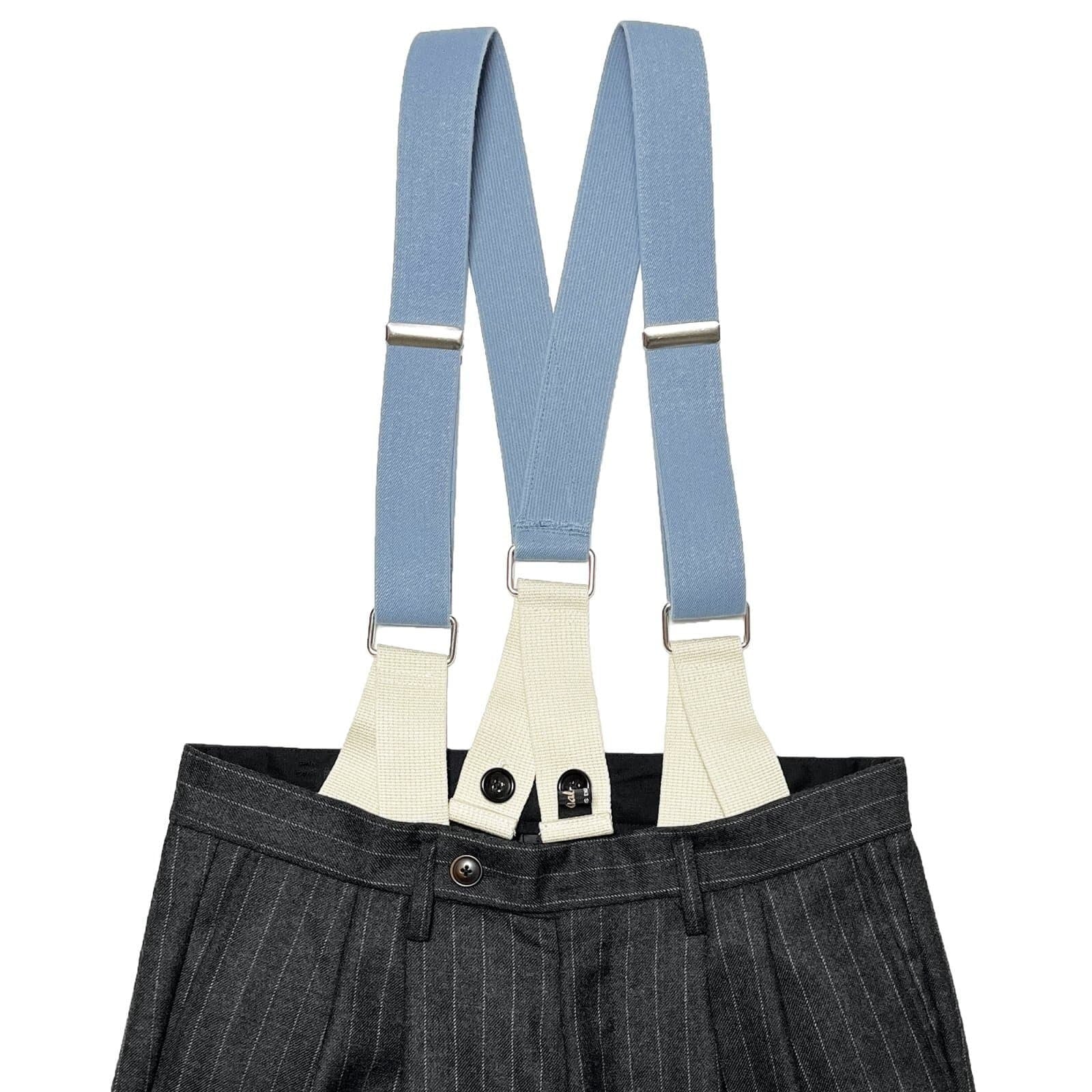 サスペンダーの使用を基盤にしているためウェストは少し大きめに作ってあります。