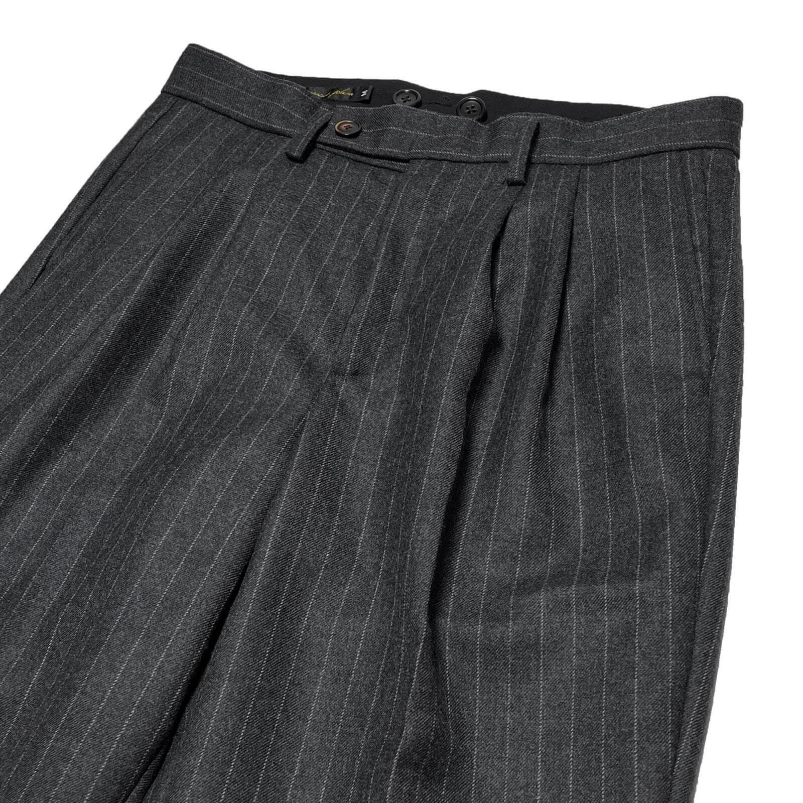 2タックが入った太いワタリから強めの角度でテーパードしていくシルエットで短靴との相性が非常に良いです。