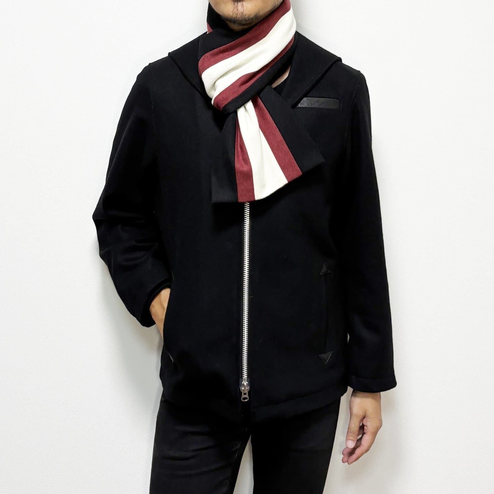 冬のブリティッシュファッションには定番のスクールマフラー。