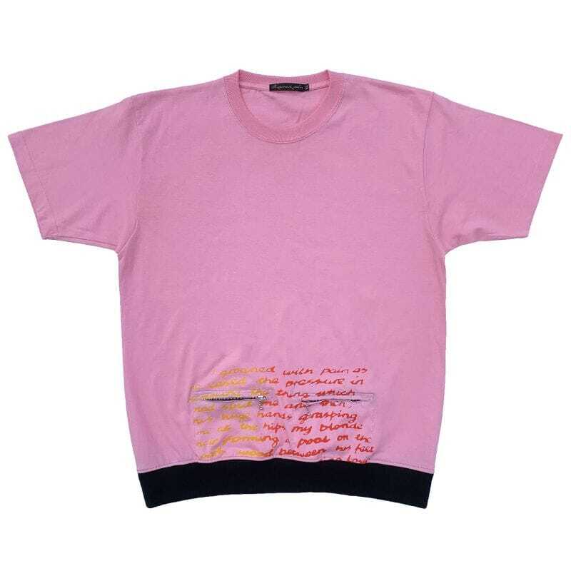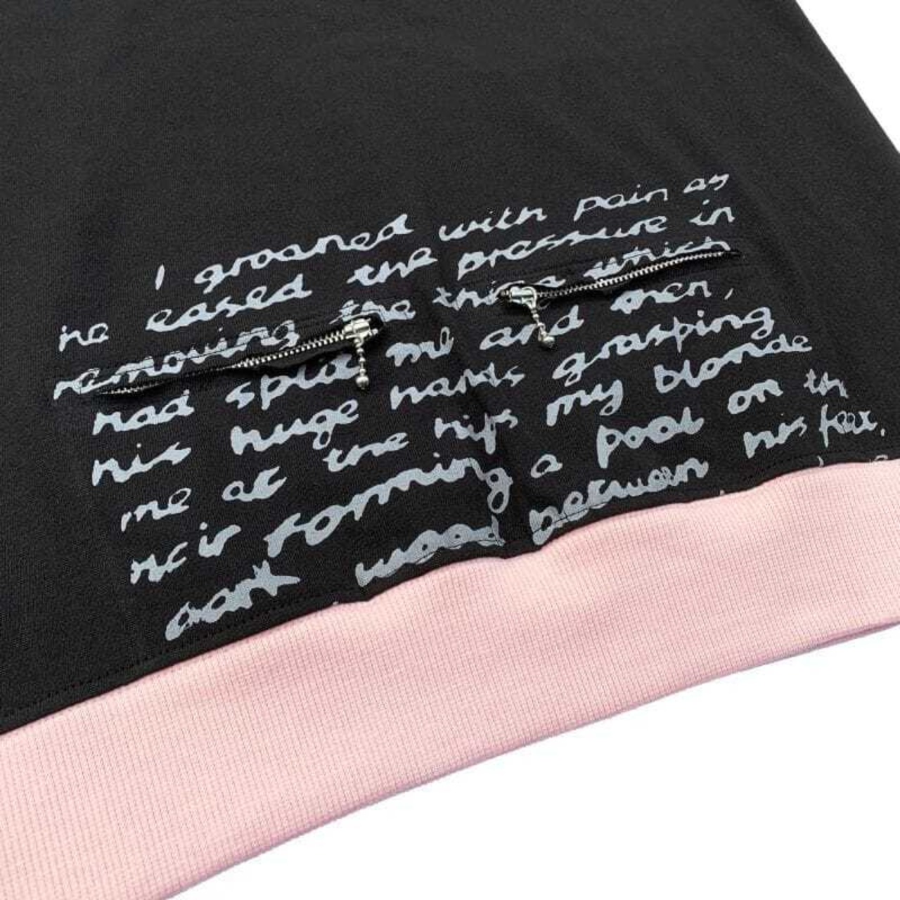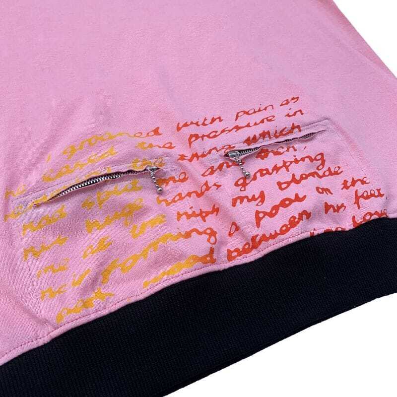 SEDITIONARIESのポルノ小説テキストデザインを胸からボトムに移したオマージュデザインに裾と袖口をバイカラーリブに切り替えた6.2OzヘビーウェイトTシャツ。